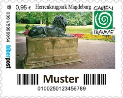 Die Briefmarke "Gartenträume Spiegelsberge Halberstadt" aus der 95er Serie „Gartenträume" ist als Einzelmarke, als 30er-Bogen und im 5er-Markenheftchen erhältlich. Das 5er-Markenheftchen beinhaltet jeweils die fünf verschiedene Motive der Wertstufe.