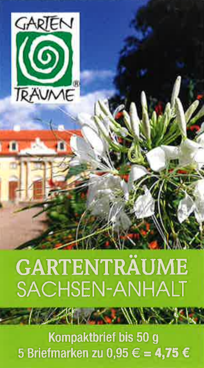 Die 95er Serie „Gartenträume" als 5er-Markenheftchen erhältlich. Das 5er-Markenheftchen beinhaltet jeweils die fünf verschiedene Motive der Wertstufe.