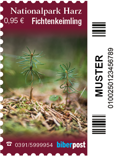 Die Briefmarkenserie „Harz" als Heftchen enthält das Motiv "Fichtenkeimling" in der der Wertstufe 0,95 € . Diese Marke ist auch auf 30er-Bögen und als Einzelmarke erhältlich.