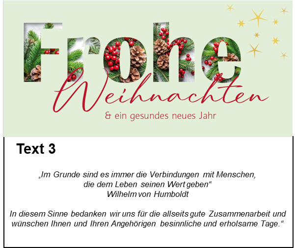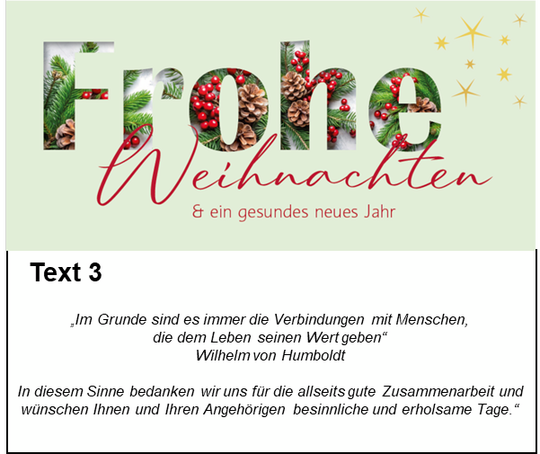 Gestalten Sie hier Ihre ganz persönliche Weihnachtskarte und übermitteln Sie uns Ihre Empfängerliste. Wir produzieren Ihre Karten und stellen sie nach Ihren Wünschen zu.