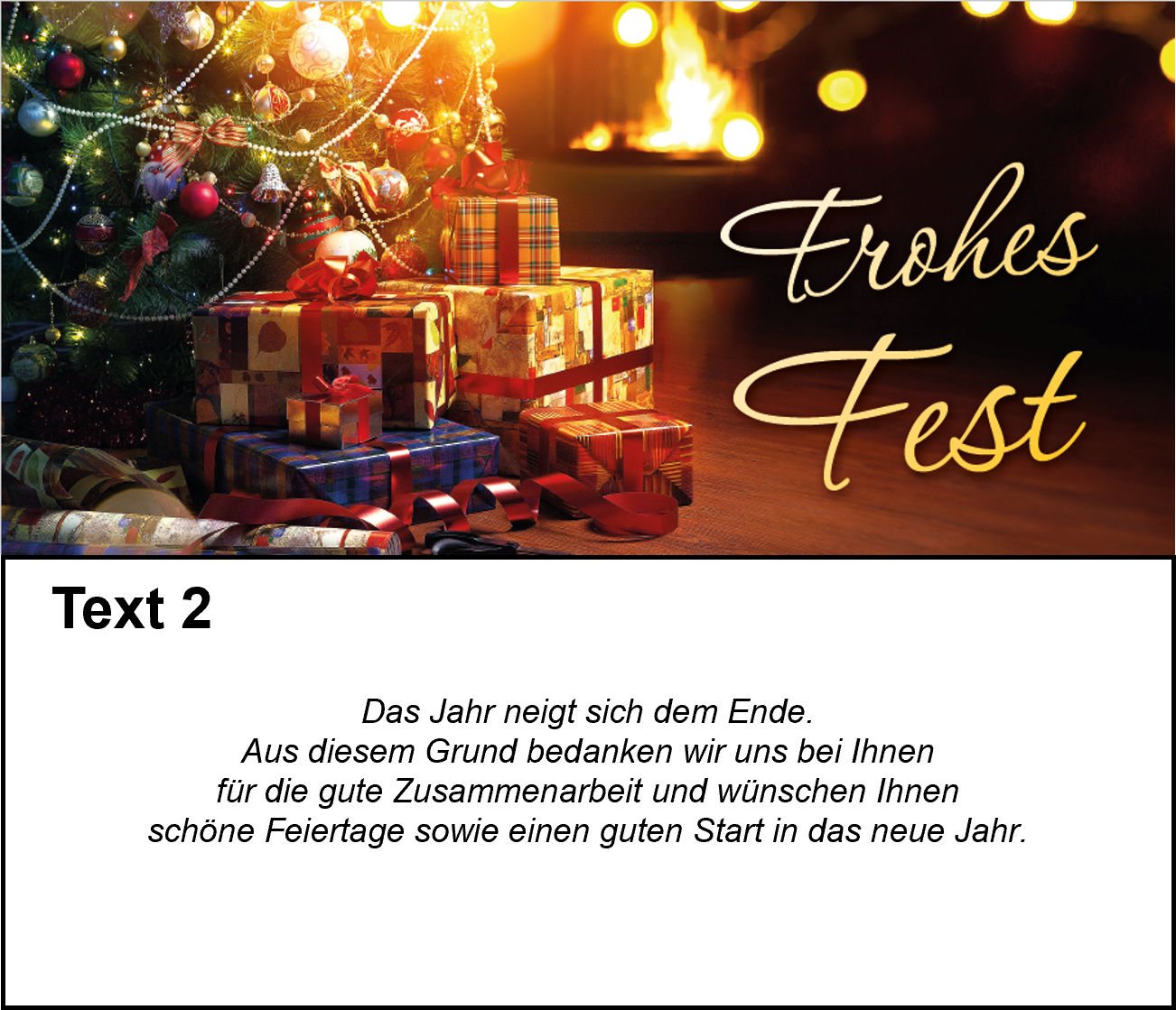 Gestalten Sie hier Ihre ganz persönliche Weihnachtskarte und übermitteln Sie uns Ihre Empfängerliste. Wir produzieren Ihre Karten und stellen sie nach Ihren Wünschen zu.